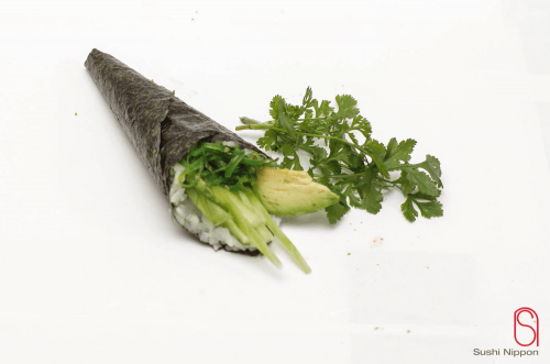 Avocado, wakame, zoete omelet, komkommer, sesam
