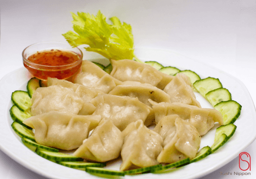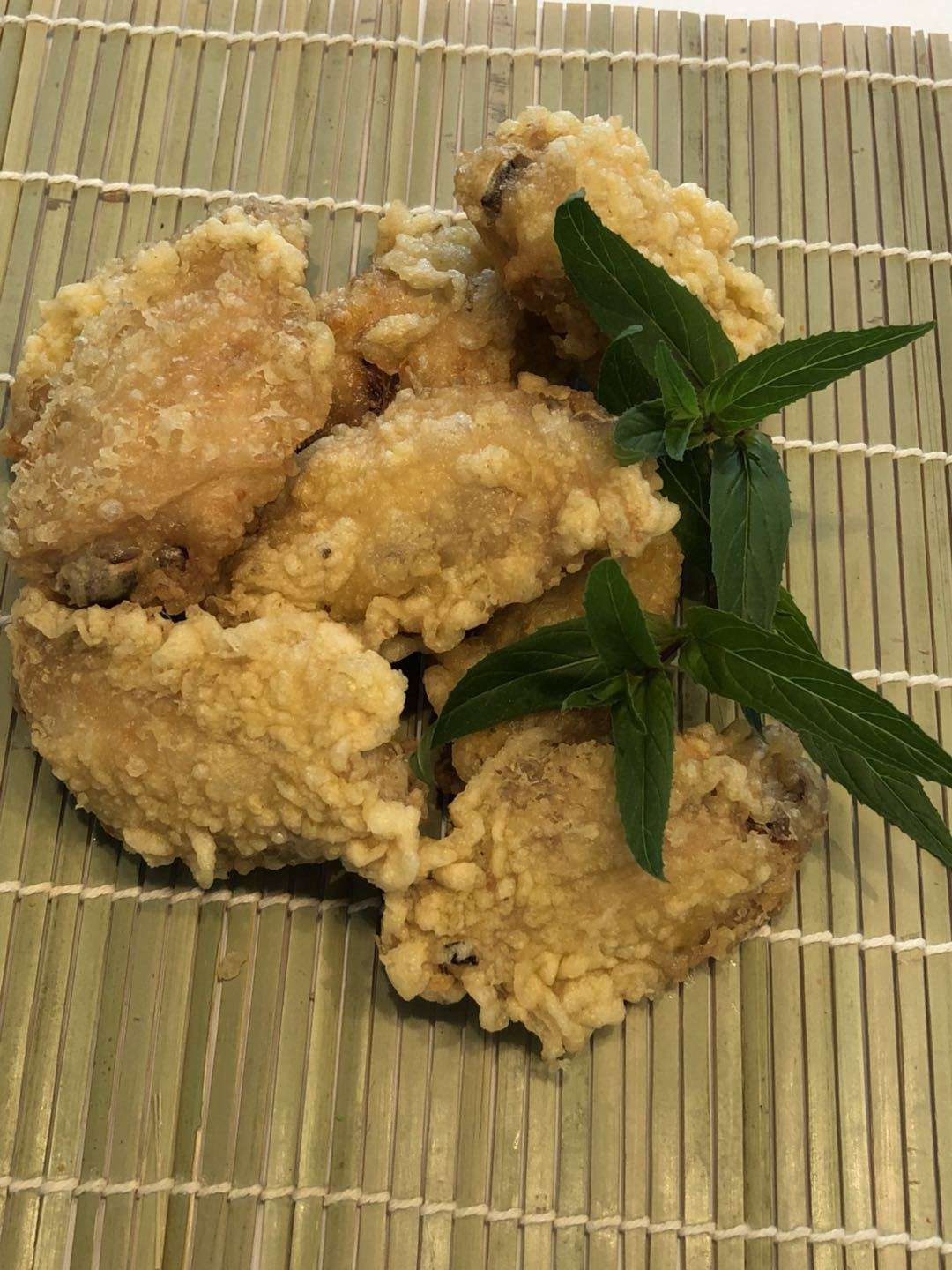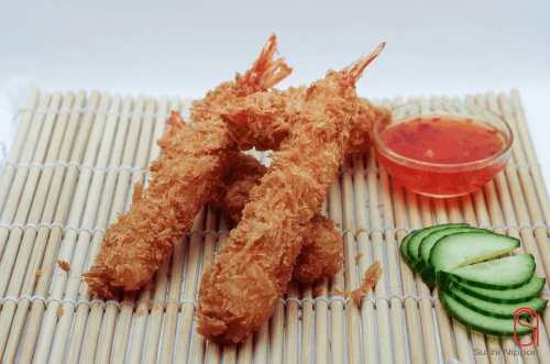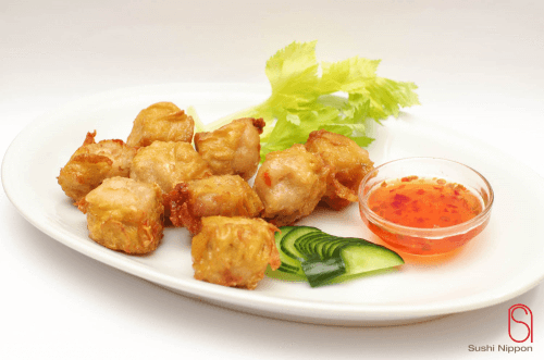 2 stuks fried ebi, 6 stuks karaage chicken, 4 stuks sieuw mai