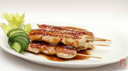 Komkommer teriyaki kip unagi saus mayonaise,sesam lente ui en gebakken ui