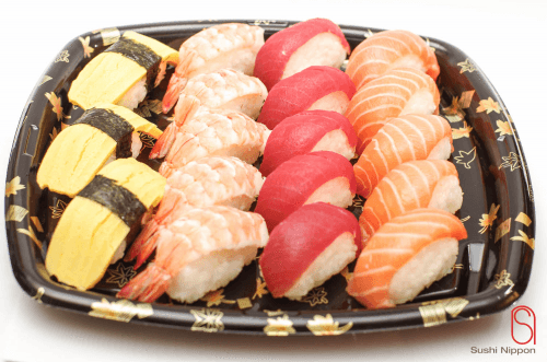 Nigiri: 5 stuks van Sake, Maguro, Ebi 3 stuks van Tamago