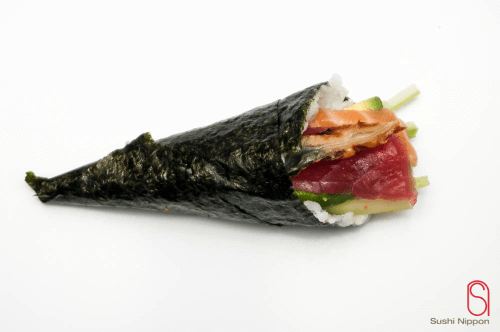 Ukimaki: 8 stuks van Sake, Maguro, Surimi, Ebi Tempura