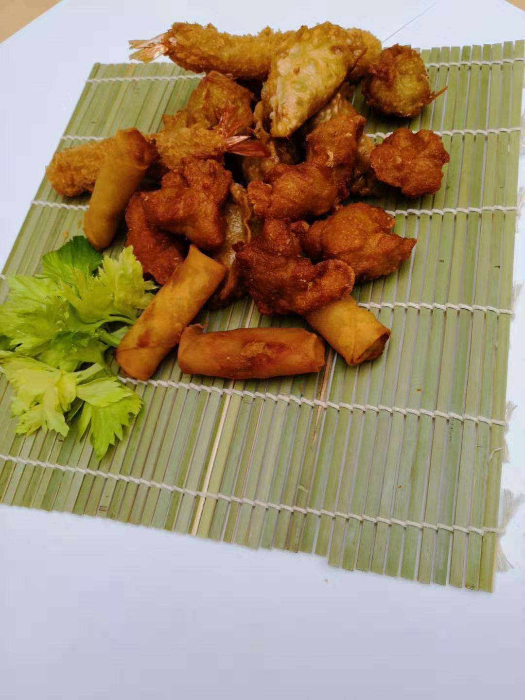 , 4 stuks spring rolls, 4 stuks garnalen pasteitjes